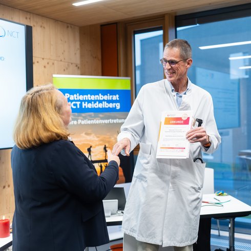 Die enge und konstruktive Kooperation mit der Patientenvertretung ist am NCT Heidelberg nicht mehr wegzudenken. Der kontinuierliche Austausch, die stärkere Einbindung in Versorgungs- sowie Forschungsthemen und die partnerschaftliche Zusammenarbeit lassen viele Projekte besser gelingen und generieren neue Ideen. Den Blickwinkel und die Meinung der Patientinnen und Patienten über eine aktive Vertretung zu erfahren, ist für das NCT Heidelberg unverzichtbar. Unser Dank gilt allen Patientenvertretenden für ihre wertvolle Unterstützung!