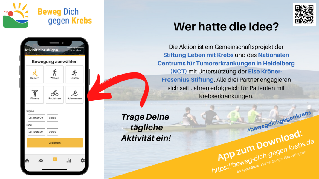 14.282 Bewegungsstunden – das ist das Ergebnis der ersten Online-Benefiz-Veranstaltung „Beweg dich gegen Krebs“ in Heidelberg. Die sportliche Aktion wurde von der Stiftung Leben mit Krebs gemeinsam mit dem Nationalen Centrum für Tumorerkrankung (NCT) Heidelberg organisiert und von der Else Kröner-Fresenius-Stiftung unterstützt. Innerhalb von vier Wochen – vom 16. Oktober bis 15 November 2020 – bewegten sich 183 Teams und 1.108 Teilnehmerinnen und Teilnehmer zugunsten des NCT Heidelberg.