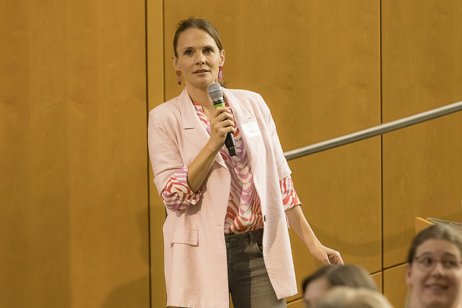 Danach stellten studienunterstützende Einheiten ihre Infotische in Pitch-Vorträgen von genau zwei Minuten gegen die Uhr vor. Die etwa 20 Infotische boten im Anschluss im Foyer Raum für vielfältigen direkten Austausch: Die Teilnehmenden konnten mit Vertretenden der Einrichtungen vertieft sprechen und neue Kontakte knüpfen.