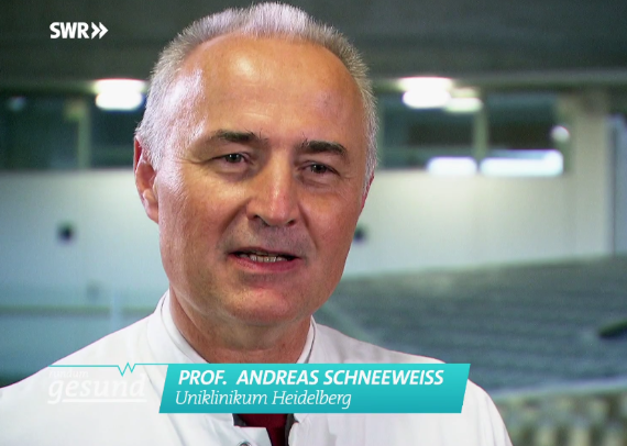 Professor Schneeweiss vom UniversitätsKlinikum Heidelberg und NCT Heidelberg in einem Beitrag des SWR-Magazins "rundum gesund" über Brustkrebs beim Mann. Der Bericht vom 25. März ist der erste Beitrag der Sendung und startet ab 00:47 Minute.