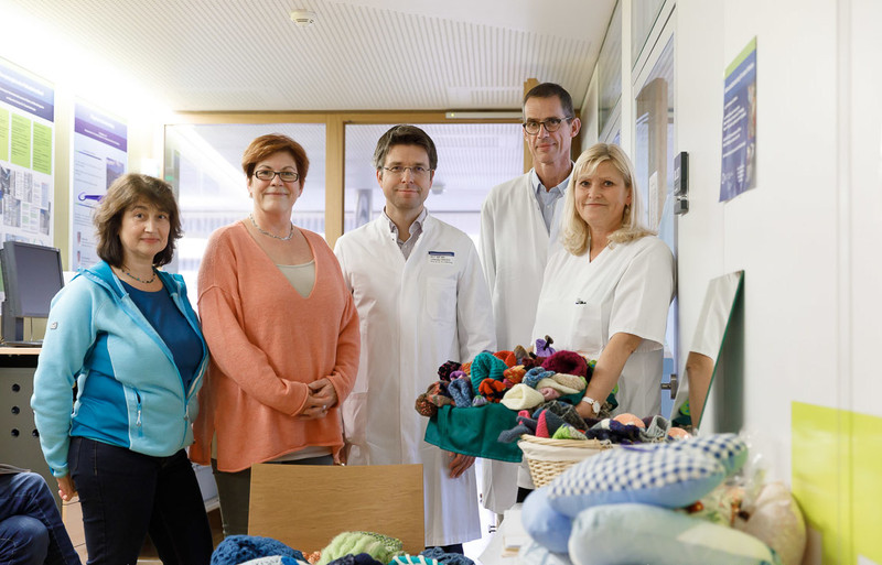 Bereits zum 5. Mal haben fleißige Helferinnen und Helfer für NCT-Patienten gestrickt, genäht und gebastelt. Heike Wachow, Leiterin des NCT-Patientenzentrums und Koordinatorin der Aktion, hatte sichtlich Mühe alle Körbe und Kisten in die Tagesklinik des NCT zu bringen. Seit dem 4. Dezember bis Weihnachten werden die Mützen, Schals, Herzkissen und andere Überraschungen an die NCT-Patienten in der Tagesklinik verschenkt.