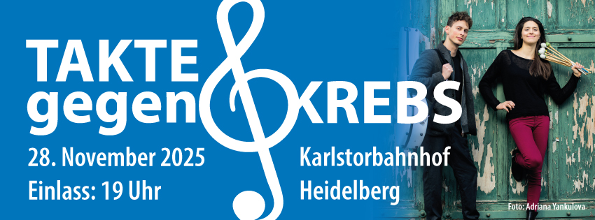 „Takte gegen Krebs“ präsentiert die Star-Schlagzeugerin und Leonard-Bernstein-Award Preisträgerin Vivi Vassileva in einem Duo-Abend für Vibrafon und Gitarre. Die spannende Kombination mit dem brasilianischen Gitarristen Lucas Campara Diniz, der für diese unkonventionelle Besetzung einige Werke arrangiert hat, bewegt sich zwischen Bach und Piazzolla. Für das Konzert erwerben Sie keine Tickets, sondern einzelne Takte des Abendprogramms.