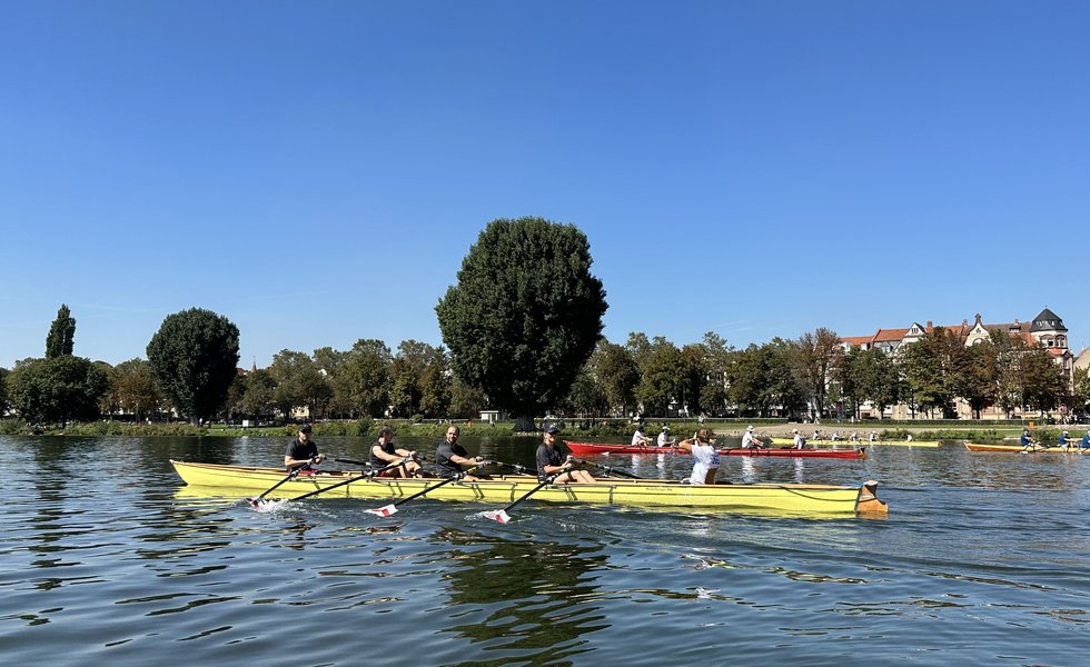Über 300 Teilnehmer:innen in knapp 80 Teams waren am Samstag, 9. September 2023 bei Rudern gegen Krebs am Start. Zum 12. Mal veranstalteten die Stiftung Leben mit Krebs, die Rudergesellschaft Heidelberg 1898 (RGH) und das NCT Heidelberg die Benefizregatta. Bei strahlendem Sonnenschein ging es nicht so sehr um sportliche Höchstleistungen, sondern in erster Linie um die gute Sache: Bewegung als Beitrag im Kampf gegen Krebs sichtbar zu machen und Spenden für Sport- und Bewegungsangebote für Krebspatient:innen des NCT Heidelberg zu sammeln. Beides ist gelungen – zum einen war das Regattadorf mit vielen Informations- und Mitmachständen sehr gut besucht und zum anderen kamen 90.000 Euro an Spenden zusammen.