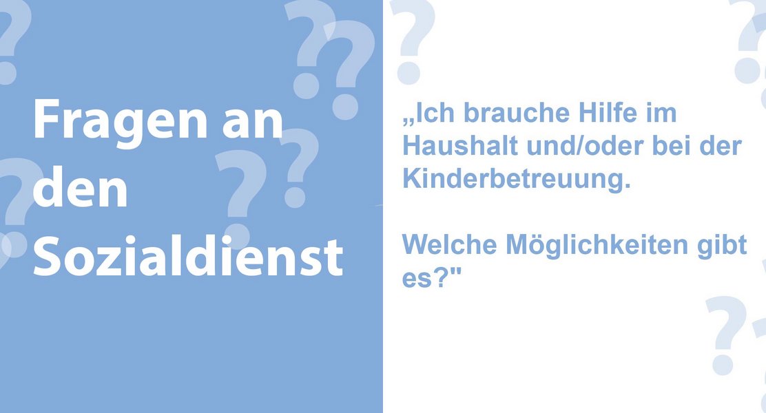 Fragen an den Sozialdienst: „Ich brauche Hilfe im Haushalt / bei der Kinderbetreuung. Welche Möglichkeiten gibt es?“