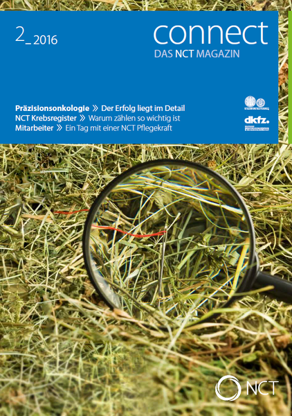 Die Folgen einer Krebserkrankung sind leicht zu erkennen. Die eigentlichen Ursachen und molekularen Details zu entdecken gleicht dagegen oft der sprichwörtlichen Suche nach der Nadel im Heuhaufen. Moderne Krebsmedizin muss daher heute vor allem präzise sein – und natürlich viel systematischer als die Suche im Heuhaufen. Schwerpunktthema der neuen Ausgabe der Zeitschrift des NCT ist „Präzisionsonkologie – Der Erfolg liegt im Detail." Wie die Präzisionsonkologie heute schon Patienten erreicht lesen Sie im aktuellen Connect 2_2016. Das gedruckte Heft erscheint Mitte Dezember.