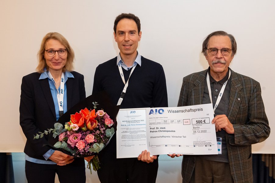 Für den im Juli in der Zeitschrift European Journal of Cancer erschienenen Beitrag mit den Ergebnissen der Studie erhält Petros Christopoulos den Wissenschaftspreis 2022 der AIO für den klinischen Teil. Petros Christopoulos ist an der Thoraxklinik am Universitätsklinikum Heidelberg und NCT Heidelberg zuständig für die Wissenschaftskoordination der Thoraxonkologie sowie Principal Investigator im Deutschen Zentrum für Lungenforschung (DZL). Der Preis wurde beim Herbstkongress der AIO in Berlin überreicht.