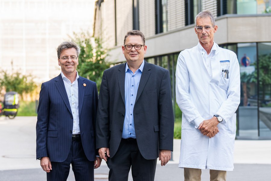 Nach dem NCT Heidelberg besuchte Stefan Schwartze die Klinik für Palliativmedizin am UKHD. Hier erläuterte Bernd Alt-Epping, Ärztlicher Direktor der Klinik für Palliativmedizin, insbesondere die palliativen Versorgung von Krebspatienten. Der Fokus liegt hierbei auf der Linderung von Symptomen und der Verbesserung der Lebensqualität, insbesondere in fortgeschrittenen Krankheitsstadien.