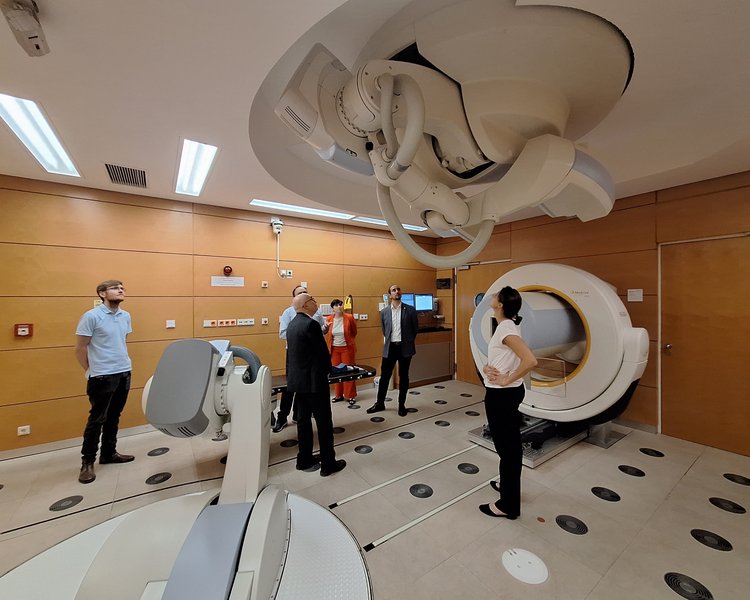 Darauf folgten zum einen der Austausch zu den klinischen Studienaktivitäten am NCT Heidelberg und möglichen gemeinsamen Aktivitäten, zum anderen ging es im Anschluss um digitale Onkologie, integrierte Datensätze und KI. Den Abschluss bildete ein Besuch am Heidelberger Ionenstrahl-Therapiezentrum (HIT), geleitet von Amir Abdollahi, Geschäftsführender Direktor am NCT Heidelberg und Leiter der Translationalen Radioonkologie am UKHD, und Maximilian Knoll aus derselben Abteilung.