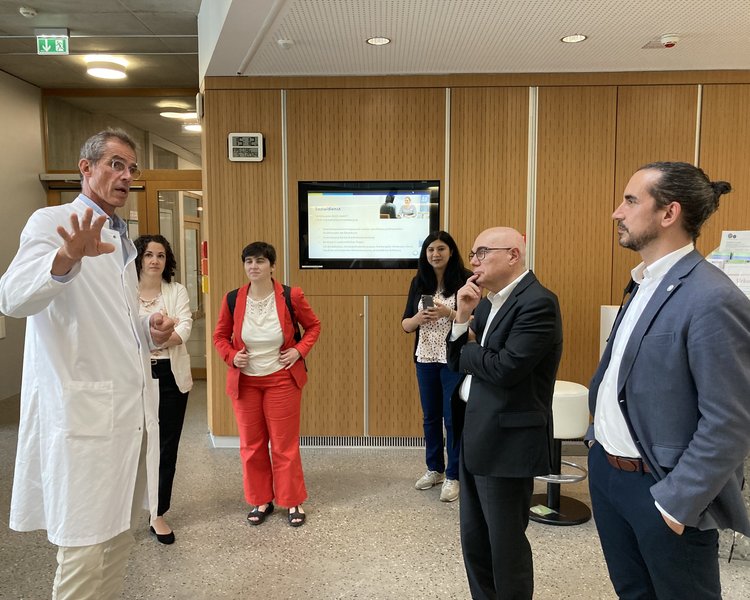 Danach stand für die Delegation ein Besuch des NCT Heidelberg, geführt von Dirk Jäger, Geschäftsführender Direktor am NCT Heidelberg und Leiter der Medizinischen Onkologie am UKHD auf dem Programm.
