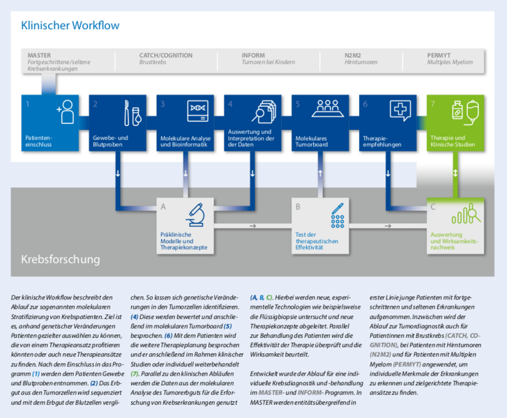 „Mit Stand März 2020 haben wir circa 2.000 Patienten des MASTER-Programms mit Tumoren im fortgeschrittenen Stadium im molekularen Tumorboard besprochen. „Derzeit sind wir in etwa 80 Prozent der Fälle in der Lage, aus den Daten evidenzbasierte Empfehlungen für das weitere Management der Erkrankung betroffener Patienten abzuleiten“, fasst Fröhling zusammen. Das MASTER-Programm war Pionier, um personalisierte Ansätze der Krebsmedizin im klinischen Alltag zu etablieren. Inzwischen wird der Ablauf zur Tumordiagnostik für Klinik und Forschung auch für Patienten unterschiedlichster Krebserkrankungen genutzt.