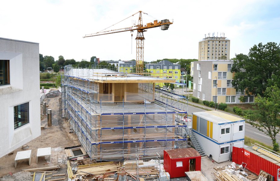 Auf die traditionellen Feierlichkeiten eines Richtfestes verzichtet das NCT Heidelberg aufgrund der Coronavirus-Pandemie.