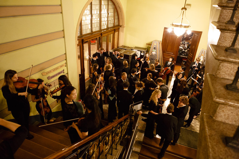 Unter Leitung von Jukka-Pekka Saraste präsentierte die Junge Deutsche Philharmonie zu Beginn das Stück Laterna magica von Kaija Saariaho. Das Werk wurde begleitet durch eine stimmungsvolle Lichtanimation von Matthias Riekers. Die visuellen Farben schufen mit den Tönen des Orchesters ein Erlebnis für Ohren und Augen. Anschließend folgte das Konzert für Klavier und Orchester Nr. 3 C-Dur op. 26 von Sergej Prokofieff. Solist beim diesjährigen NCT-Benefizkonzert war Tzimon Barto, der als einer der besten Pianisten der Gegenwart gilt. Mit Spannung ging es in die Pause. „Erst jetzt wird sich zeigen, ob die 1.174 Takte der Sinfonie Nr. 4 op. 29 von Carl Nielsen vollständig gespielt werden oder noch einige Takte stumm bleiben müssen“, berichtete ZDF-Moderator Norbert Lehmann, der durch den Abend führte. Kurz darauf war es klar: 118 Takte wurden nicht verkauft und gingen wieder an das Orchester zurück. Schließlich konnte aufgeatmet werden, die Junge Deutsche Philharmonie füllte auch die noch fehlenden Takte mit Musik und Melodie und führte die Sinfonie vollständig auf.