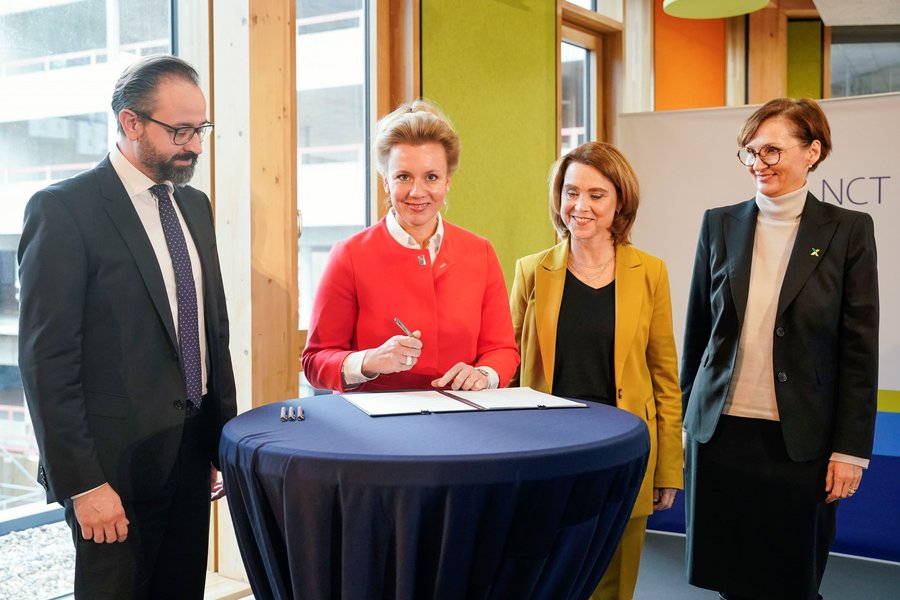 Die Bundesministerin für Bildung und Forschung, Bettina Stark-Watzinger, und Ministerinnen und Minister der Bundesländer Baden-Württemberg, Bayern, Berlin, Nordrhein-Westfalen und Sachsen unterzeichneten die Bund-Länder-Verwaltungsvereinbarung für das Nationale Centrum für Tumorerkrankungen (NCT). Zugleich weihten das Deutsche Krebsforschungszentrum (DKFZ) und das Universitätsklinikum Heidelberg den Erweiterungsbau und Anbau des NCT Heidelberg ein. Der Bauherr DKFZ übergab dabei den Schlüssel feierlich an das Universitätsklinikum Heidelberg, das das Gebäude betreibt.