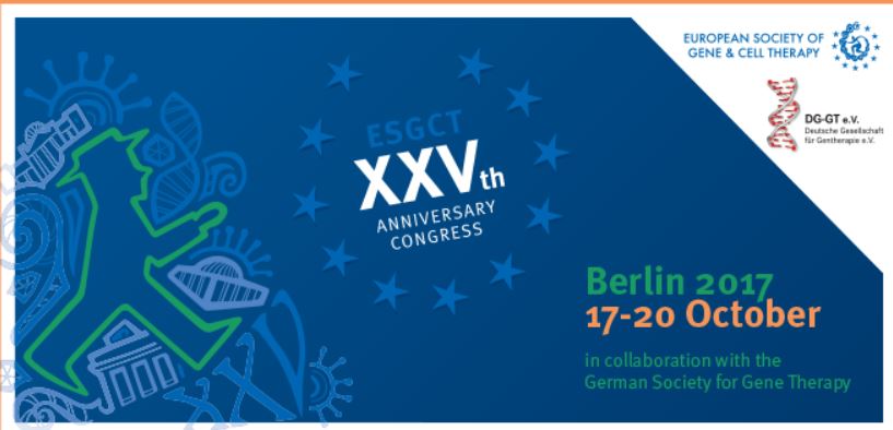 Die ESGCT (www.esgct.eu/Home.aspx) feiert in diesem Jahr ihren 25. Geburtstag. Sie ist – wie auch die DG-GT e.V. – eine Vereinigung von Naturwissenschaftlern und Ärzten, die sich international in der Grundlagenforschung und der klinischen Forschung im Bereich Gentherapie, Zelltherapie und genetische Impfstoffe engagiert. Besondere Schwerpunkte liegen auf dem Informations- und Technologieaustausch, der Fortbildung von (Nachwuchs-) Wissenschaftlern und Ärzten in allen Bereichen der Zell- und Gentherapie sowie dem Dialog mit der Öffentlichkeit und den regulatorischen Institutionen in Europa.